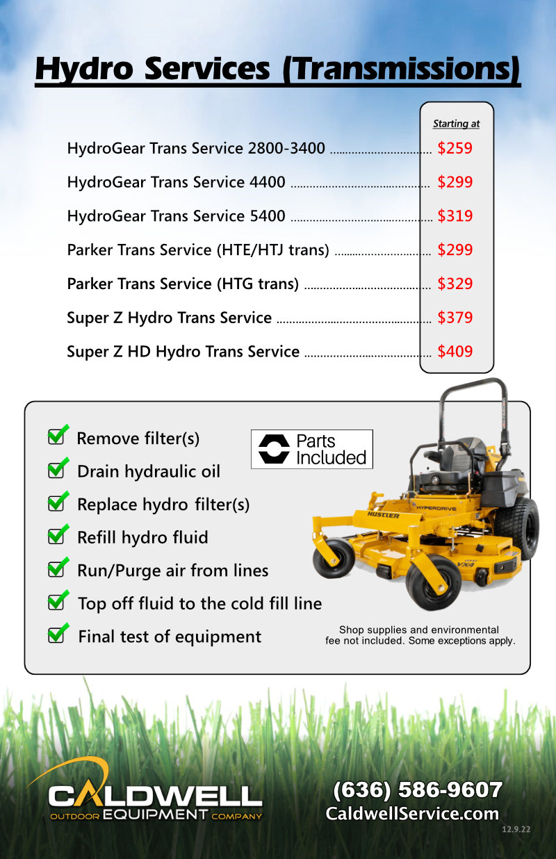 We service Hustler, Ferris, Gravely, Exmark, Toro, Scag, Craftsman, John Deere, Troy-Bilt, Cub Cadet, Toro, Snapper, Honda, Stihl, Husqvarna and much more.